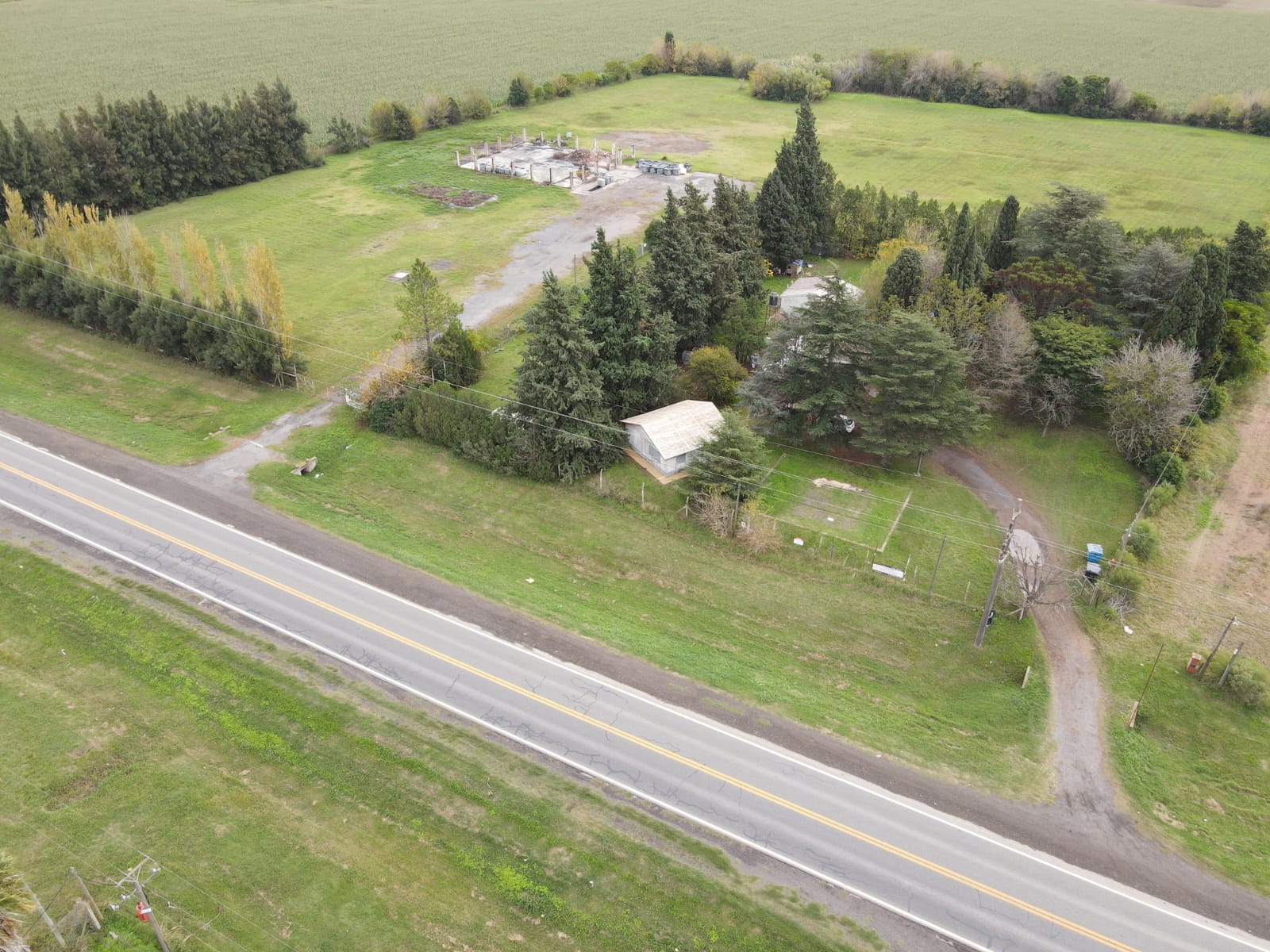 Cuenta con dos accesos sobre la RN A012, Alambrado perimetral, dos casas (una prefabricada) y Pileta.